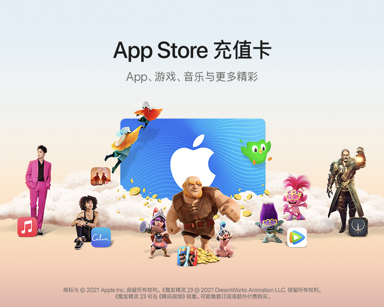适用游戏:Apple苹果充值。适用于App Store充值购买软件,充值游戏等